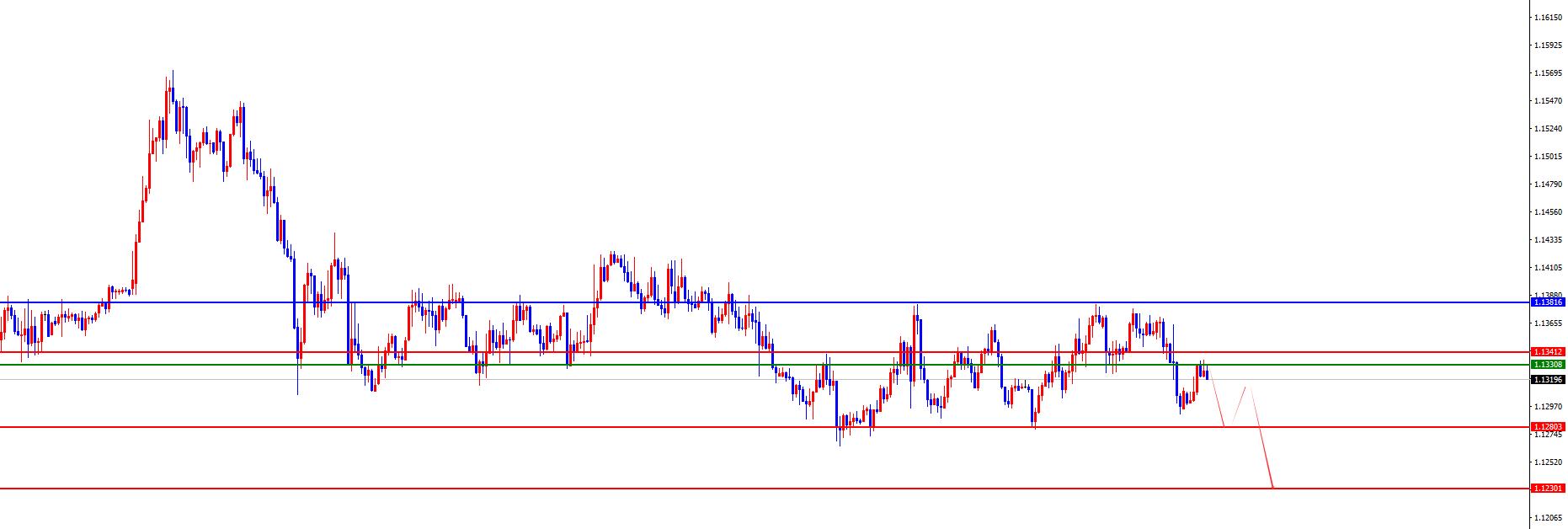 欧美1.1330-40区间空,防守50点,目标1.1280-1.1230